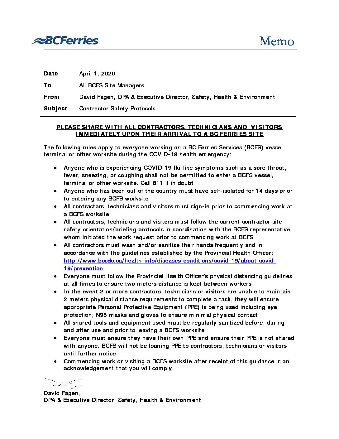 Covid-19 BCFR Contractor Safety Protocols