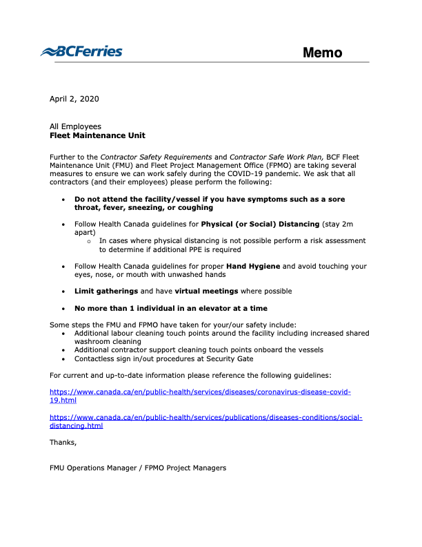 Please click on the image to preview the Contractor Memo COVID 19 Precautions PDF document