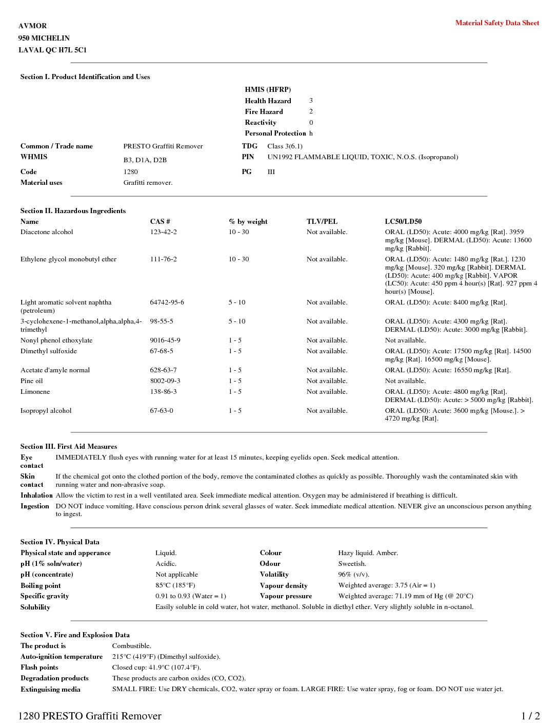 Presto Grafitti Remover 1280 – SDS (MSDS)